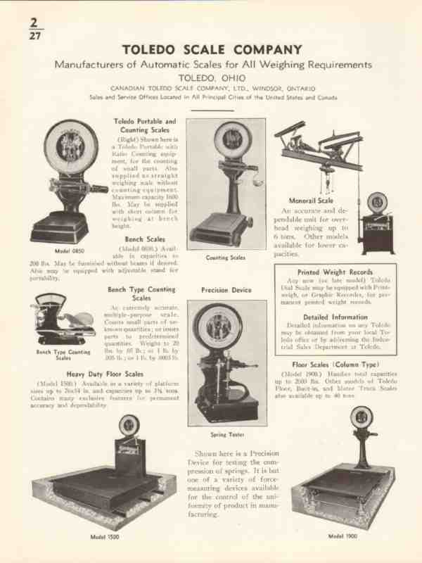 Toledo Scale Company 1942 vintage industrial catalog process equipment