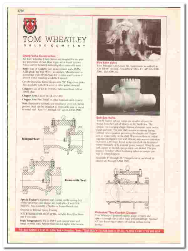 Original 1990 Oil and Gas trade vintage catalog for the TOM WHEATLEY VALVE COMPANY. Main office and plant were located at 3131 West Little York Road, Houston, TX.