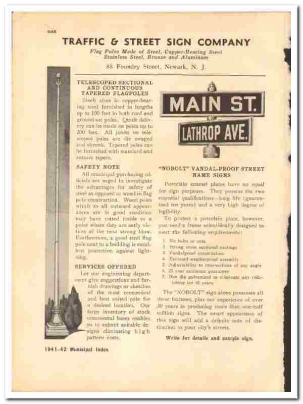 Traffic Street Sign Company 1941 vintage catalog flag poles Nobolt