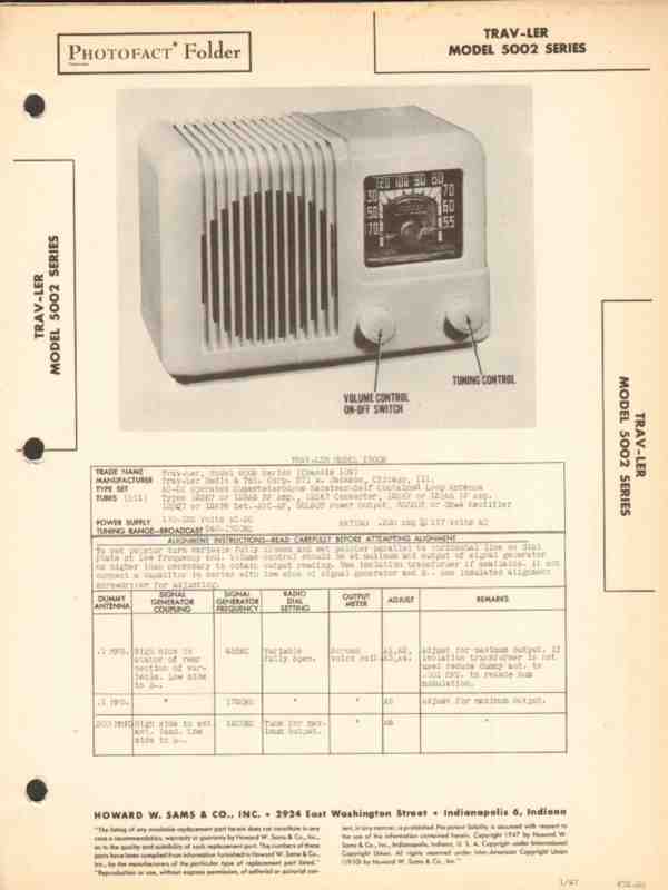 trav-ler model 5002 series am radio receiver sams photofact manual