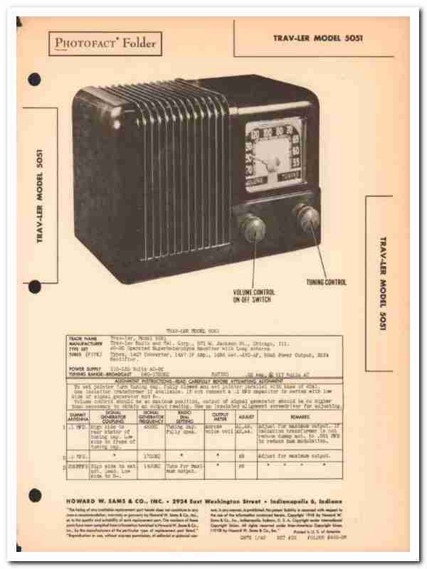 trav-ler model 5051 5-tube am radio receiver sams photofact manual