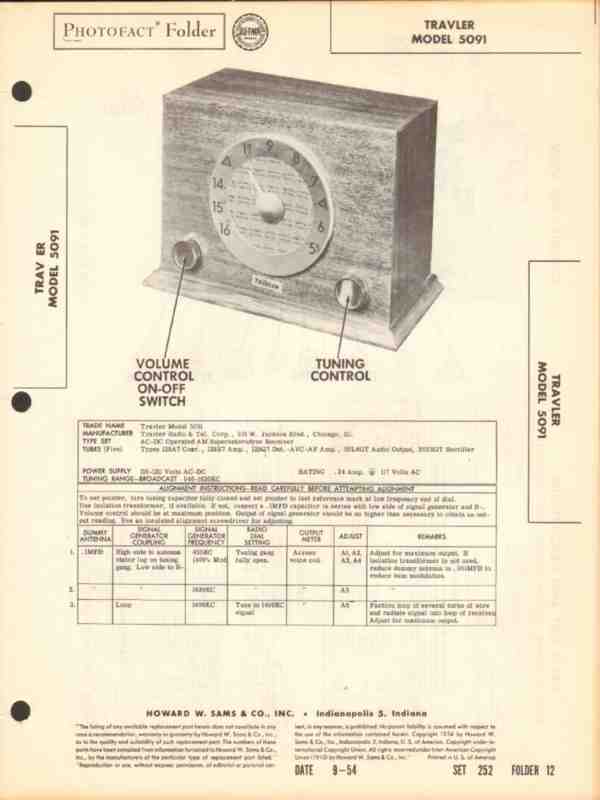 trav-ler model 5091 5 tube am radio receiver sams photofact manual