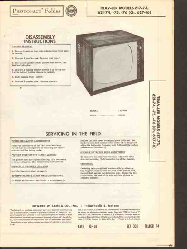 trav-ler model 617-73 621-7x tv television sams photofact manual