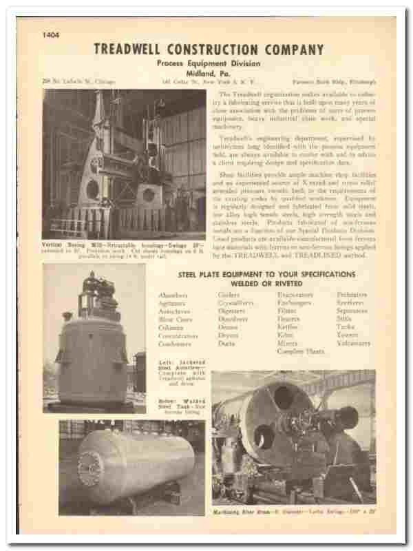 Original 1948 industrial trade vintage catalog for the TREADWELL CONSTRUCTION COMPANY. (Process Equipment Division). Main office and plant were located in Midland, PA.