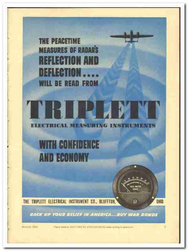 Triplett Electrical Instrument Company 1943 vintage ad radar peacetime