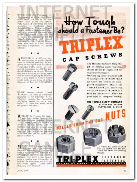 triplex screw company 1948 toughness threaded fasteners vintage ad