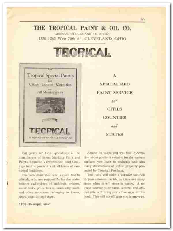 Original 1930 road construction and maintenance trade vintage catalog for the TROPICAL PAINT & OIL COMPANY. Main office and plant was located at 1220-1262 West 70th Street, Cleveland, OH.