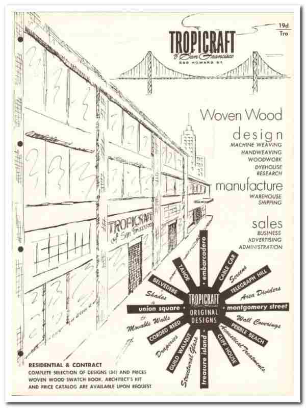Tropicraft of San Francisco 1961 vintage window catalog woven woods