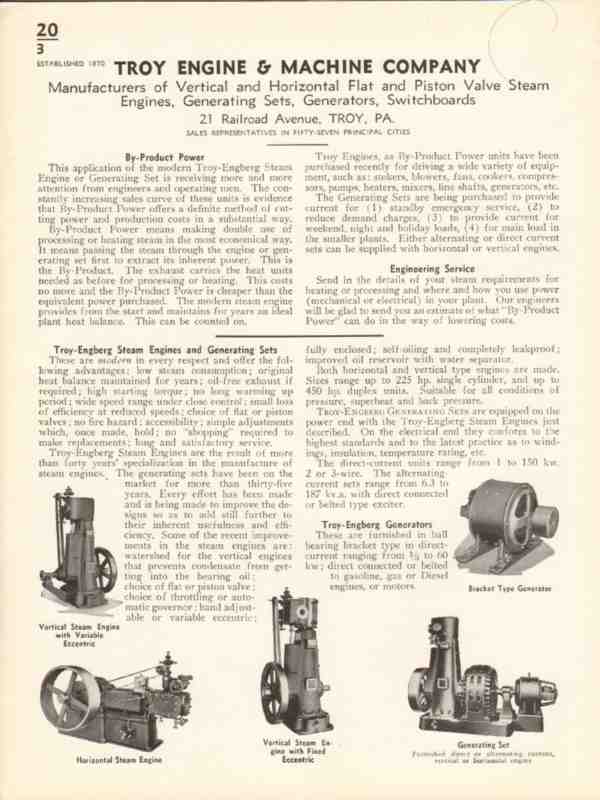 Troy Engine Machine Company 1936 Vintage Catalog Steam Generating Sets