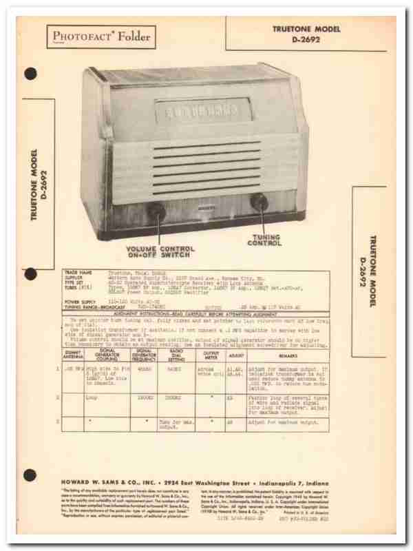 truetone model 2692 6-tube am radio receiver sams photofact manual