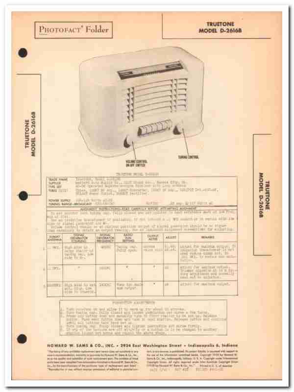 truetone model d-2616b 6-tube am radio receiver sams photofact manual
