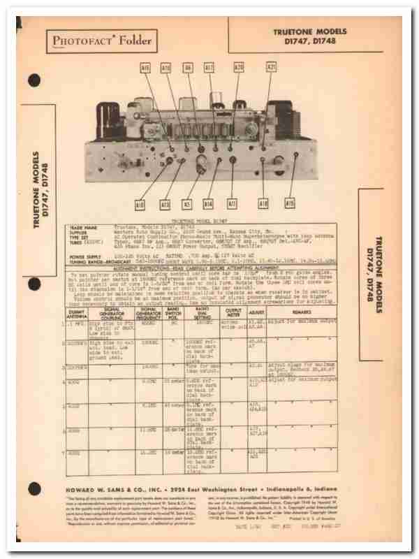 truetone model d1747 d1748 am sw radio receiver sams photofact manual