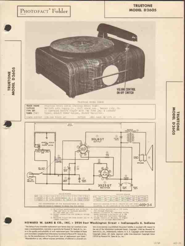 truetone model d2605 phonograph record player sams photofact manual