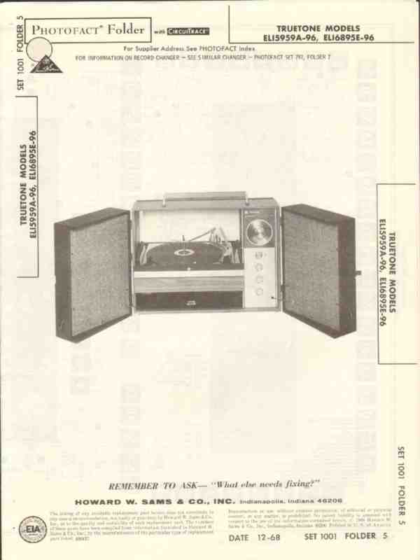 truetone model eli5959a96 am fm radio phonograph sams photofact manual