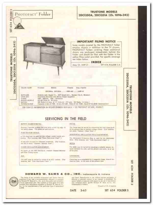 truetone models 2dc1350a 2dc1351a tv television sams photofact manual