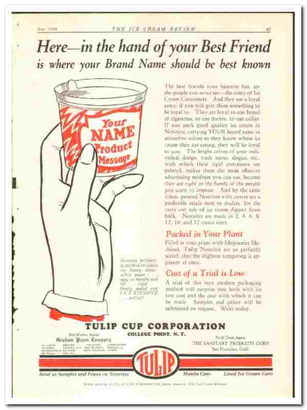Tulip Cup Corp 1928 vintage ice cream ad Nestrites Package Service