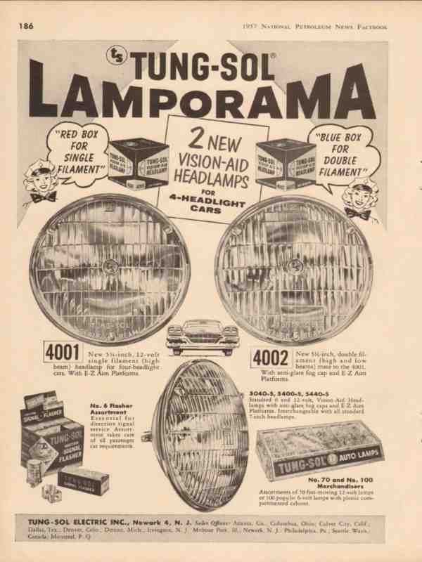 tung-sol electric inc 1957 lamporama vision-aid headlamps vintage ad