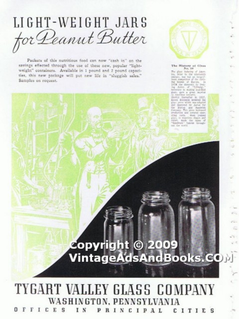 tygart valley glass company 1938 sandwich peanut butter jar vintage ad