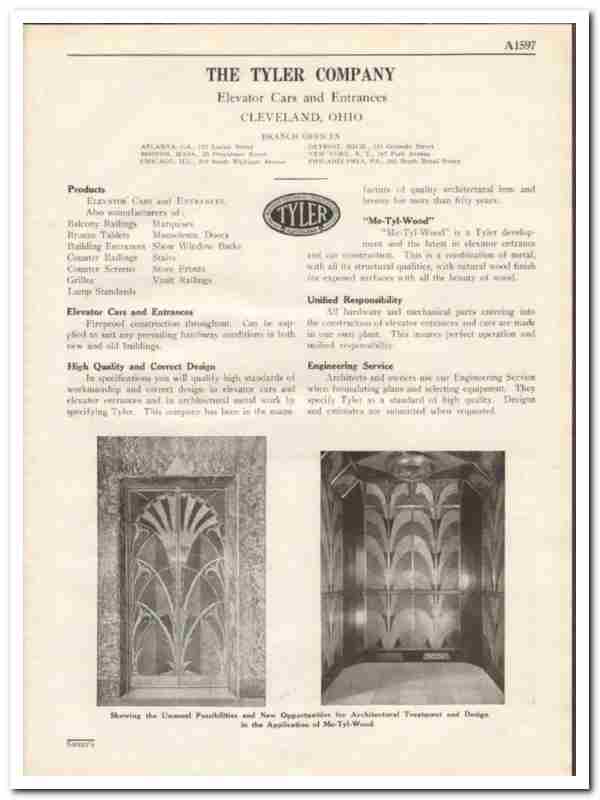 Tyler Company 1931 Vintage Catalog Elevator Cars Entrances Me-Tyl-Wood