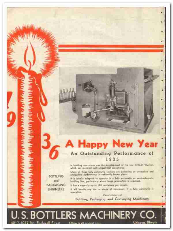 U S Bottlers Machinery Company 1935 vintage glass ad Happy New Year
