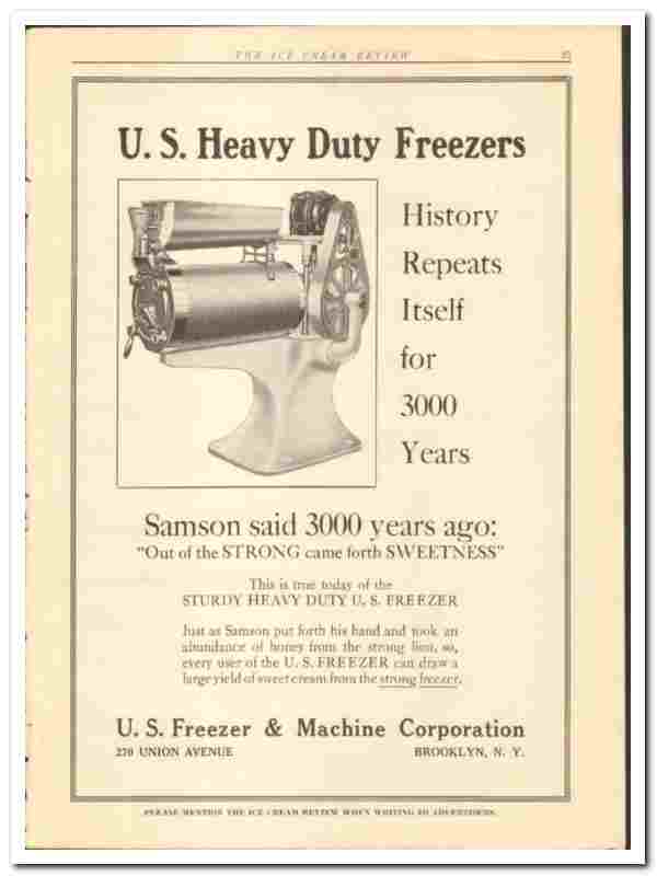 U S Freezer Machine Corp 1919 vintage ice cream ad Heavy Duty