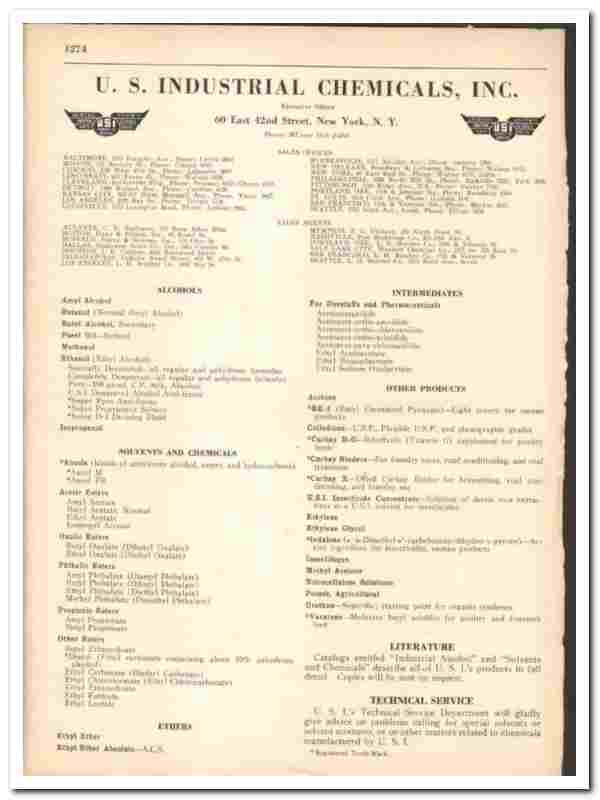 U S Industrial Chemicals Inc 1942 vintage catalog solvents alcohols