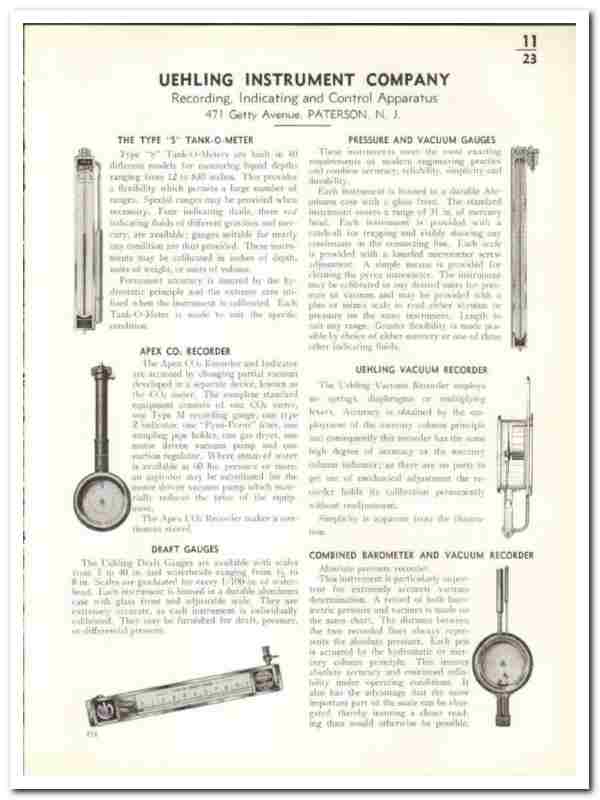 Uehling Instrument Company 1941 vintage industrial catalog gauges