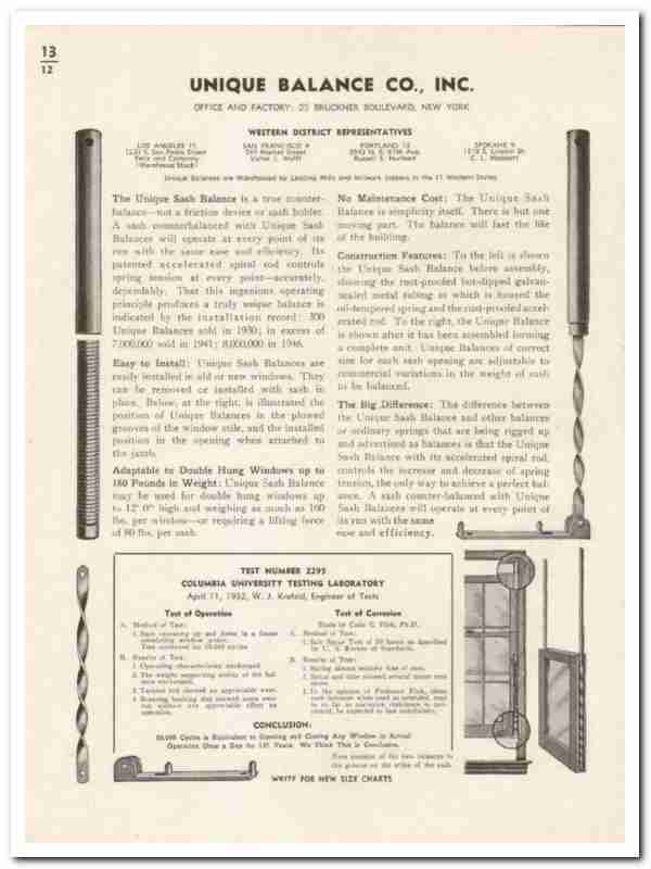 Unique Balance Company 1948 vintage window catalog sash counterbalance