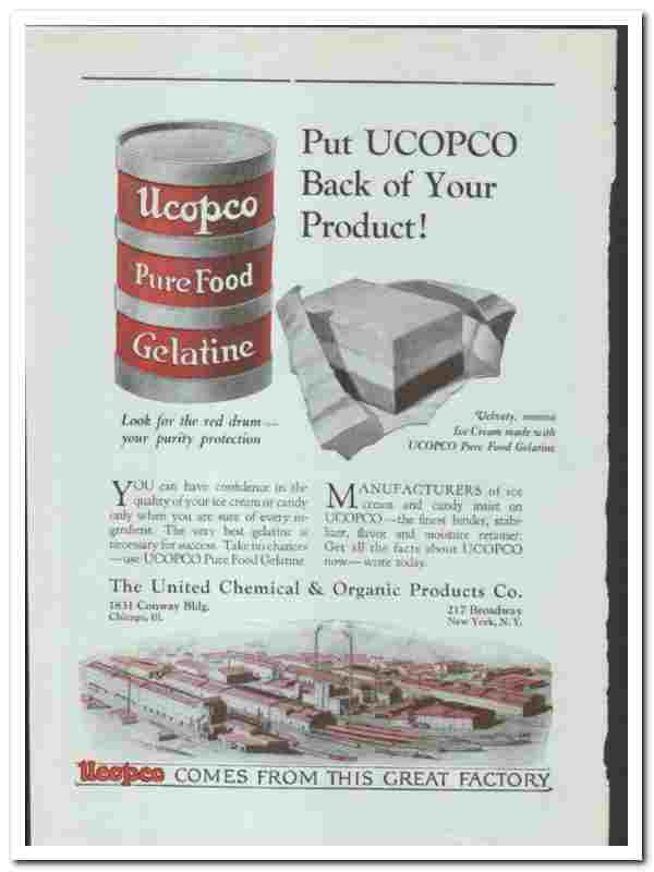 Manufacturers of UCOPCO Pure Food Gelatine for the Ice Cream Industry, which is featured.
