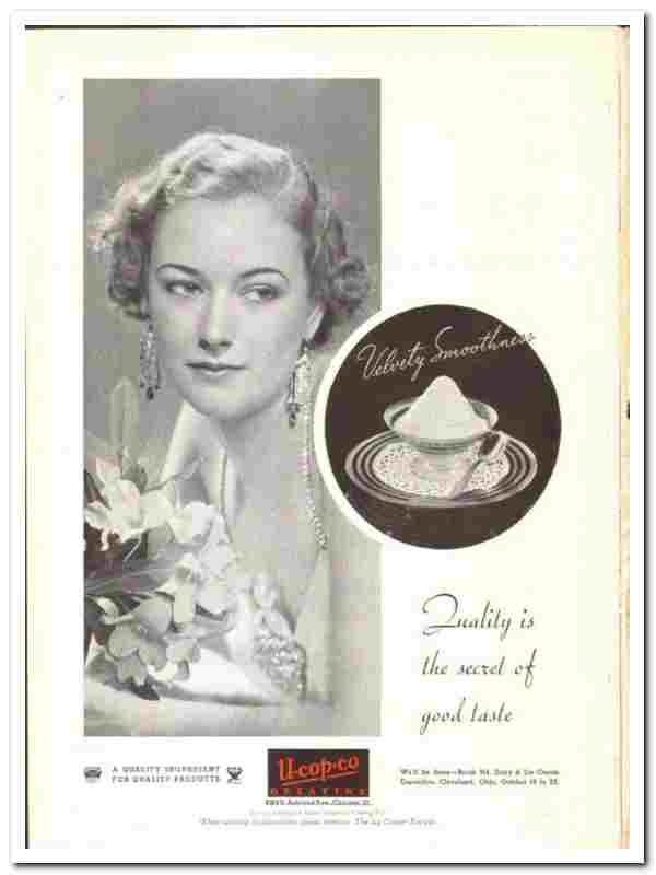 Manufacturers of Gelatine for Ice Cream. U-Cop-Co Gelatine. 'Quality is the Secret of Good Taste'. 'Velvety Smoothness'.