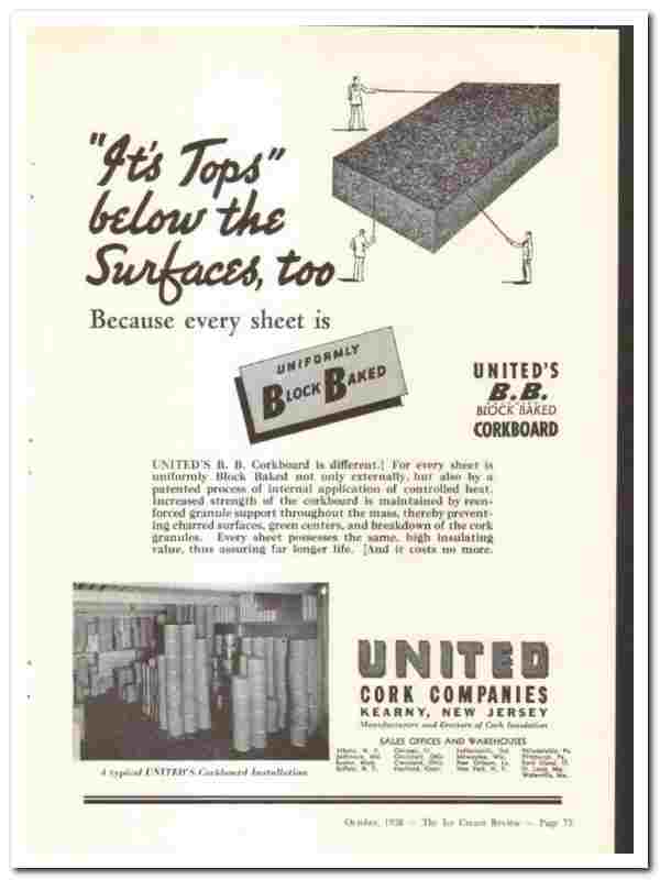 United Cork Companies 1938 vintage ice cream ad Block Baked Corkboard