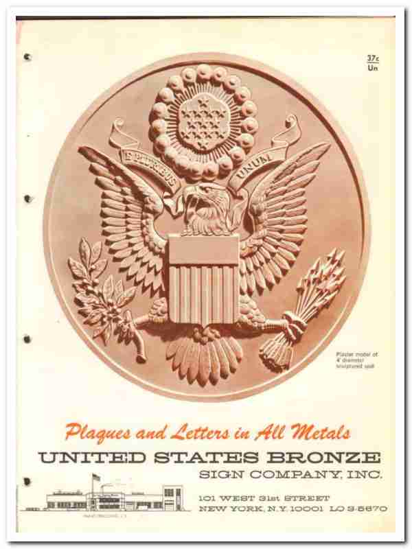 United States Bronze Sign Company 1964 Vintage Catalog Letters Plaques