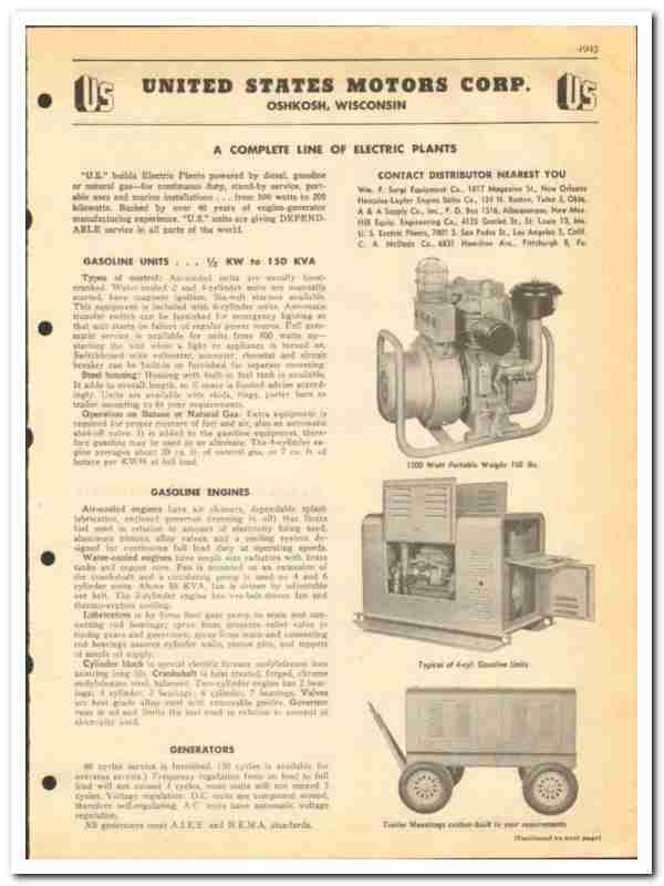 Manufacturers of Oilfield Electric Plants powered by diesel, gasoline, or natural gas, for continuous duty, stand-by service, portable uses and marine installations, from 500 watts to 200 kilowatts.