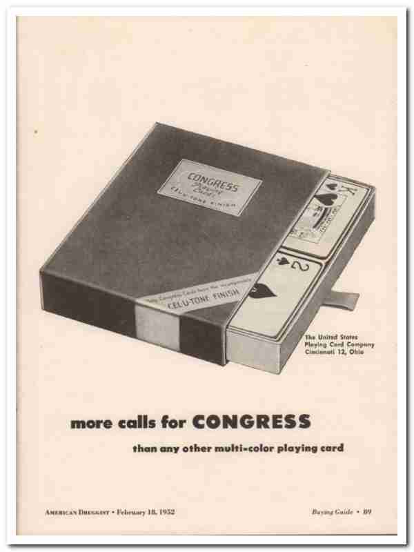 united states playing card company 1952 more calls congress vintage ad