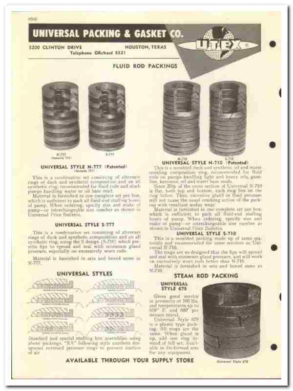 Original 1954 Oil and Gas trade vintage catalog for the UNIVERSAL PACKING & GASKET COMPANY. (UTEX). Main office and plant were located at 5200 Clinton Drive, Houston, TX.