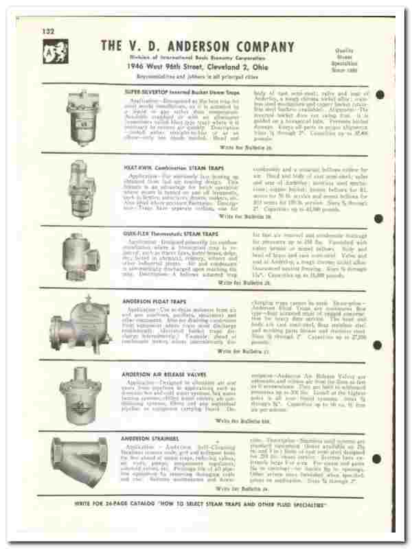 Original 1960 industrial trade vintage catalog for the V D ANDERSON COMPANY. (Division of International Basic Economy Corp). Main office and plant were located at 1946 West 96th Street, Cleveland, OH. (Steam Specialties Since 1886).