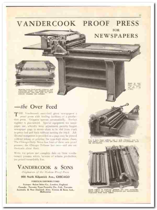 Manufacturers of the Vandercook Proof Press for Newspapers.