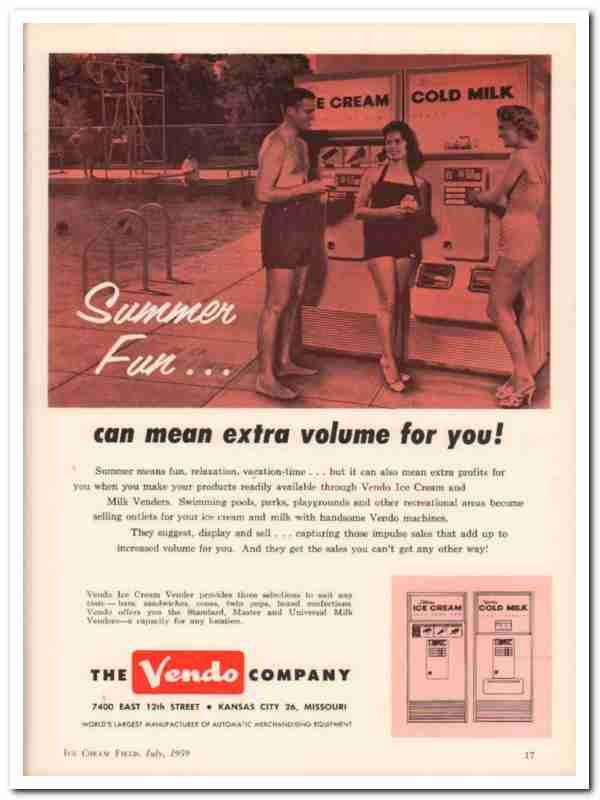 Vendo Company 1959 Vintage Ad Ice Cream Milk Vender Machine Summer Fun