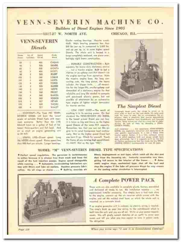 Products include the Model 'M' and Model 'HC' Venn-Severin Diesel, both are fully featured.Has product images, description, application and specifications to provide product details.