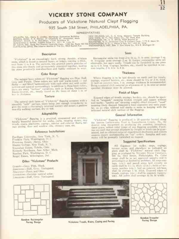 Vickery Stone Company 1938 Vintage Catalog Vickstone Natural Clept