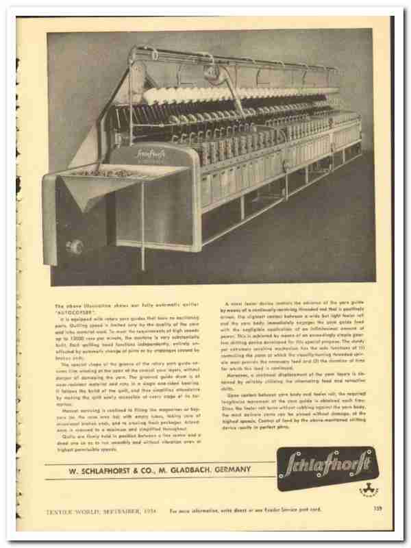 W Schlafhorst Company 1954 vintage textile ad quiller Autocopser yarn