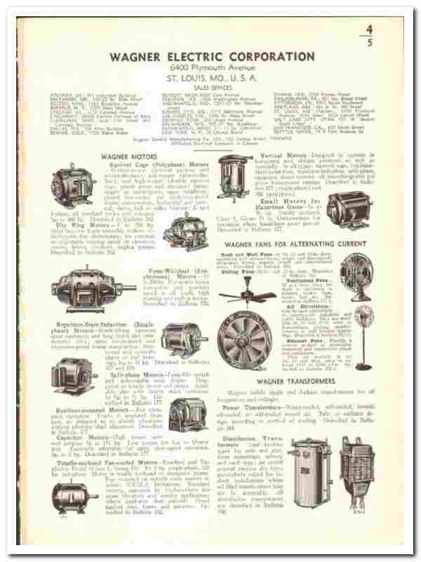Original 1939 electrical trade vintage catalog for the WAGNER ELECTRIC CORPORATION. Main office and plant were located at 6400 Plymouth Avenue, St Louis, MO.