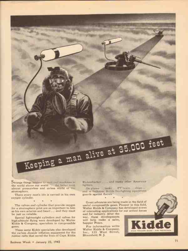 walter kidde company 1943 keeping man alive 35000 feet ww2 vintage ad