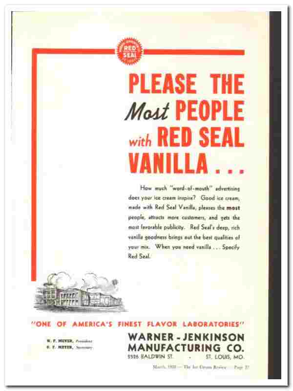 Manufacturers of Red Seal Vanilla for Ice Cream. 'Please the Most People with Red Seal Vanilla'.