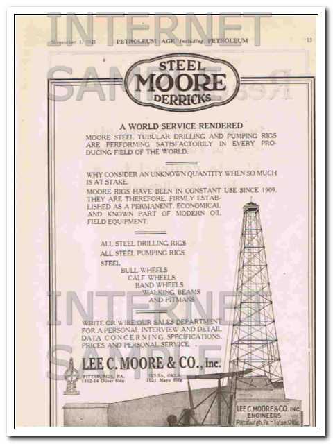 Original oil and gas trade magazine vintage ad for WARNER PETROLEUM COMPANY. Main office and factory was located in The Arcade Building, St. Louis, MO. Ready to Make Spot Shipment of All Petroleum Products. Associated Producing and Refining Corporation. Unique 1921 petroleum refining and process industry magazine advertisement. Approximate size 9 x 12 inches. (The scan shows a slight pink tint that is not in the actual ad). Slight old mailing crease down center of ad.