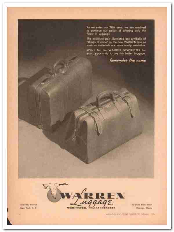 Warren Luggage Company 1946 Vintage Ad Exquisite Pair Enter 70th Year