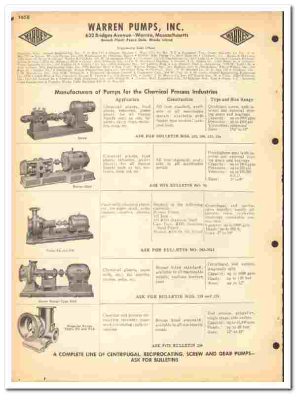 Original 1964 industrial trade vintage catalog for WARREN PUMPS, INC. Main office and plant were located at 632 Bridges Avenue, Warren, MA.