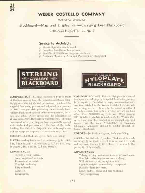 Weber Costello Company 1964 Vintage Catalog Chalkboard Asbestos