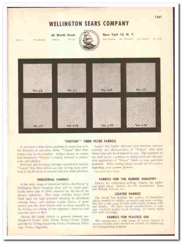 Wellington Sears Company 1947 vintage industrial catalog filter fabric