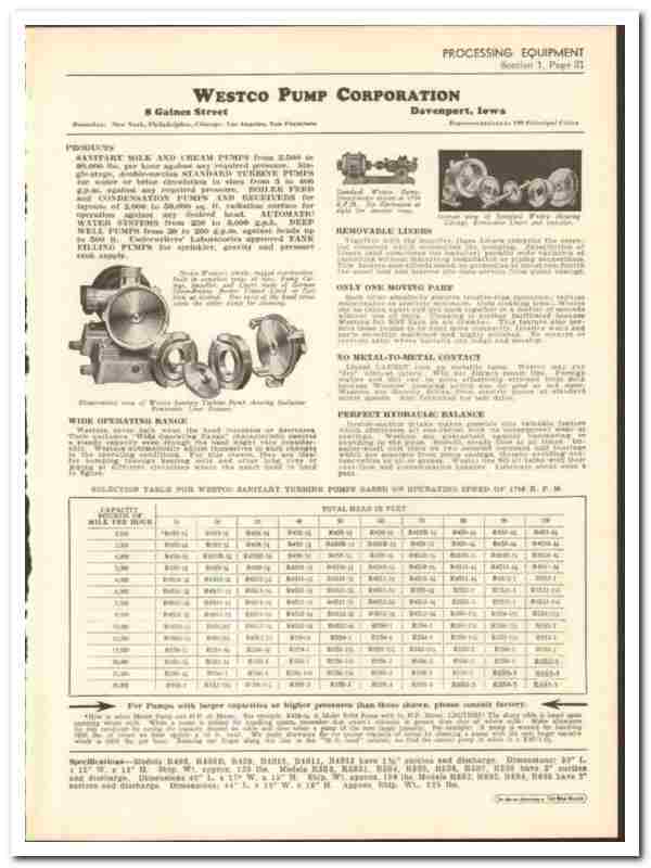Original 1936 dairy equipment trade vintage catalog for the WESTCO PUMP CORPORATION. Main office and plant was located at 8 Gaines Street, Davenport, IA.